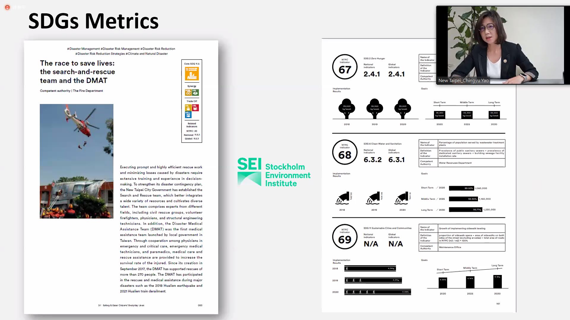 處長亦分享新北2021年VLR最大的亮點,書中編錄的「新北市疫情大事記」,記錄了市府如何在疫情肆虐下確保市民人身財產安全。其次,新北是全臺第一個與瑞典斯德哥爾摩市環境研究院(SEI)合作,使用其推行之「SDG協同工具」研析新北永續策略,並將結果收錄於書中。最後處長提到,紙本VLR是邀請年輕的設計團隊與新北在地企業,用廢棄物料製作而成,結合環保理念,從內而外實現永續目標。